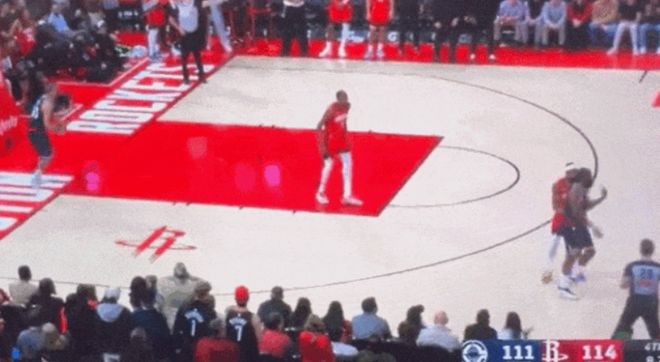 距离比赛结束前约9秒,快船手握绝平机会,哈登背身指挥队友跑位接球,但被火箭彻底防死,最终巴图姆踩线发球失误。